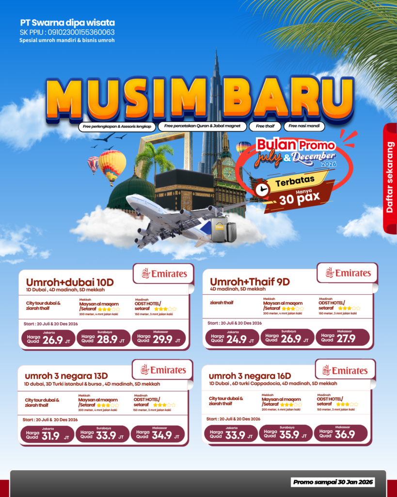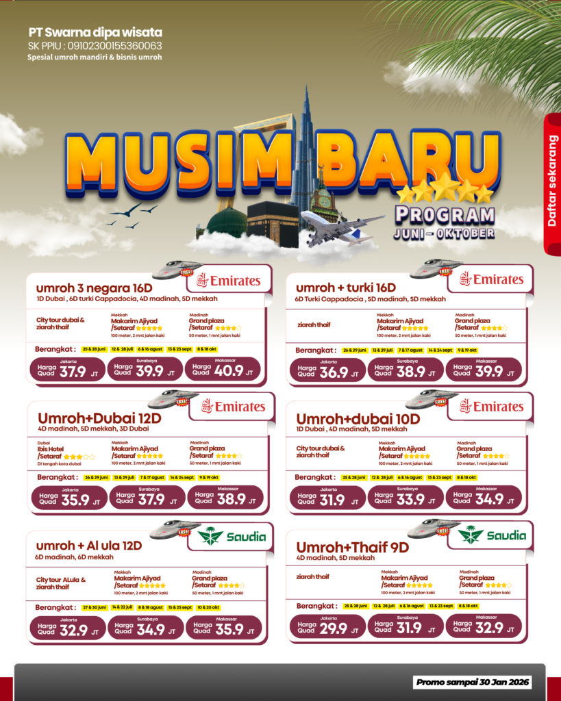Dengan paket dari SAHABAT WISATA IMANI harga bersahabat dan pastinya umrohmu bakalan aman dan menyenangkan